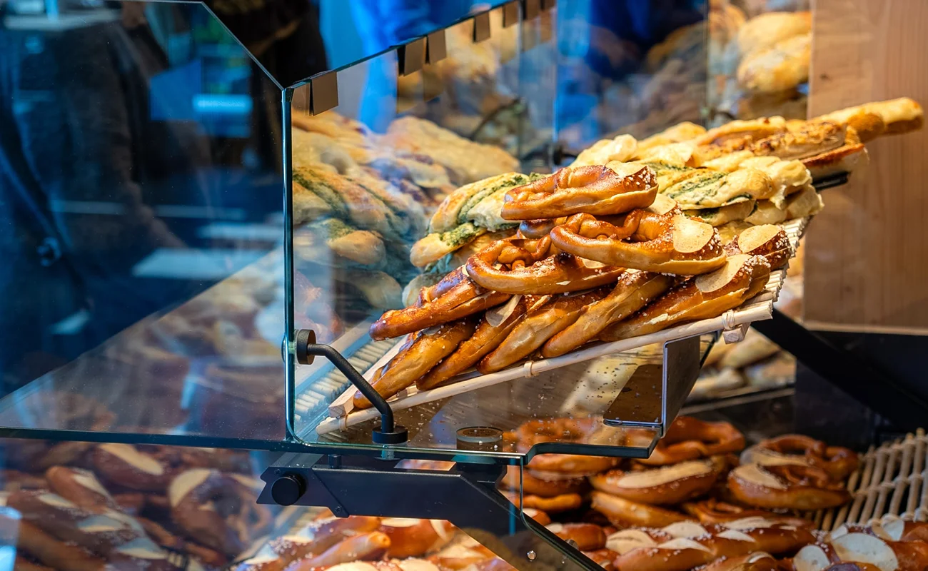 Auch für die Erweiterung Ihres Angebotes an der Heißtheke bietet sich der Manhattan Glasaufsatz an. So können Sie zusätzliche herzhafte Backwaren wie Brötchen, Brezel etc. zu Ihrem heißen Snacksortiment verkaufsfördernd präsentieren.