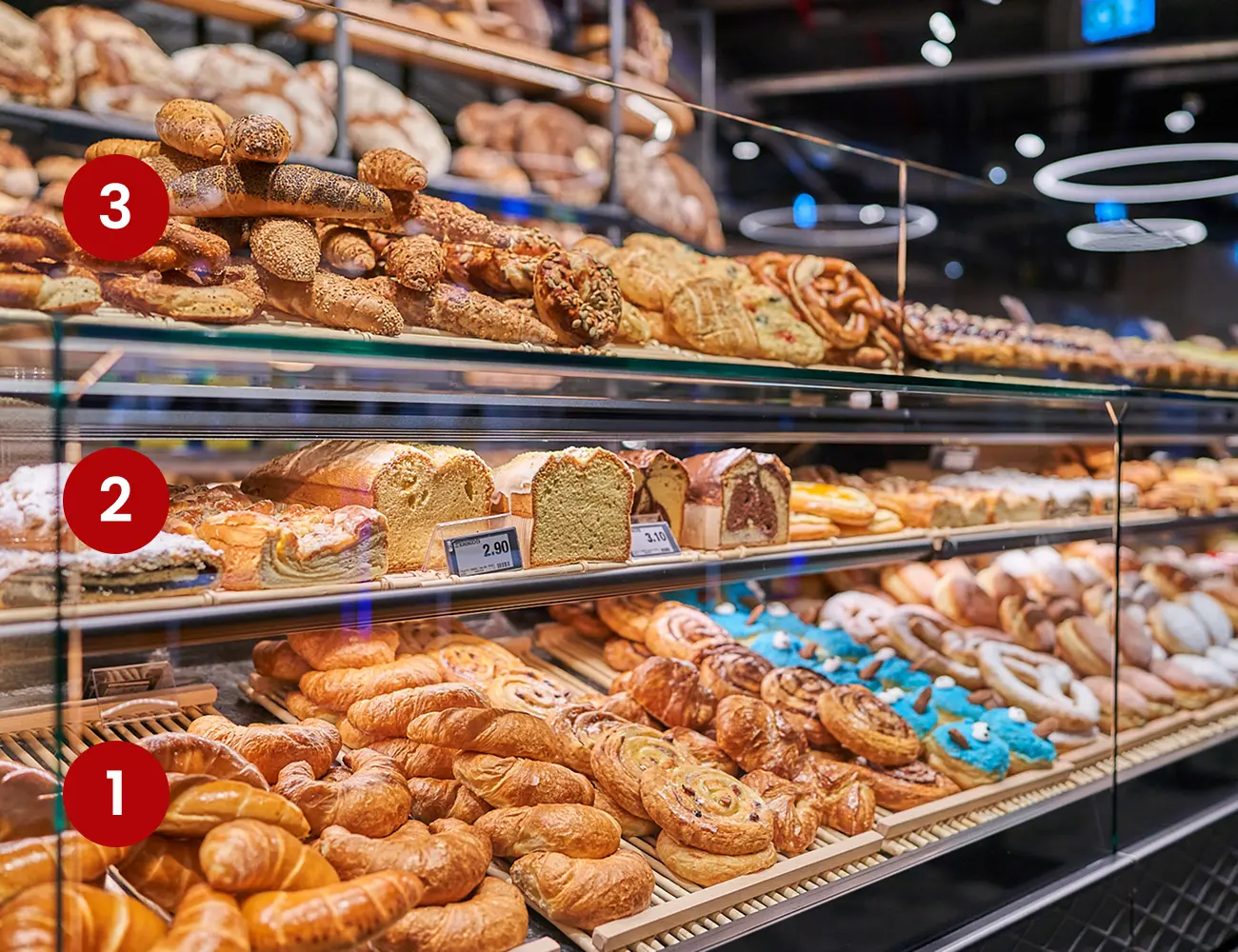Die durch das Kundenleitsystem gezielte Führung entlang Ihres gesamten Sortiments erhöht die Verweildauer an der Theke und fördert Impulskäufe. Zusätzliche Angebote entlang der Strecke laden zum Mitnehmen ein und steigern nachhaltig Ihren Durchschnittsbon.