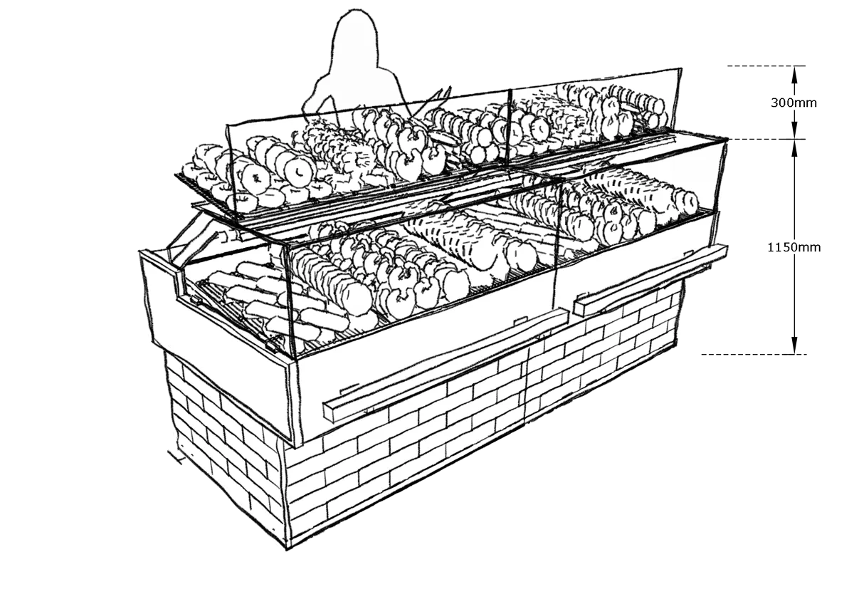 Die wegklappbare Zwischenetage schafft eine weitere Präsentationsfläche zwischen Theke und Aufsatz – ideal für eine klar strukturierte und verkaufsstarke Sortimentsdarstellung. Bei sinkender Warenmenge lässt sich die Ebene einfach zurückklappen zwecks Konsolidierung Ihrer Warenpräsentation. So bleibt Ihre Theke jederzeit aufgeräumt, übersichtlich und attraktiv.