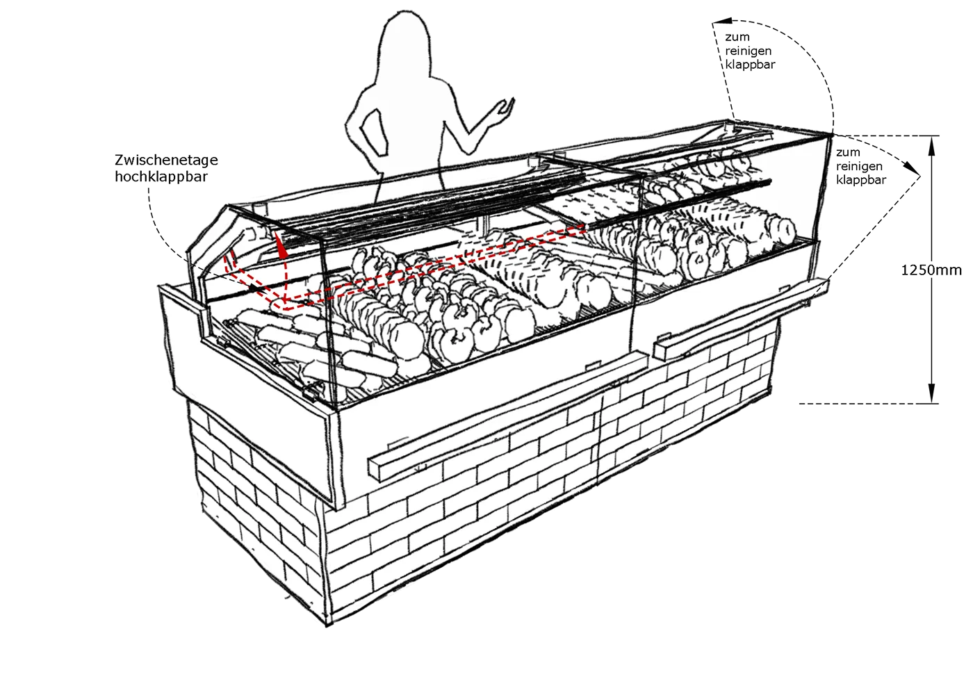 - Entlastung durch einfachere Entnahme der Ware aus der Theke