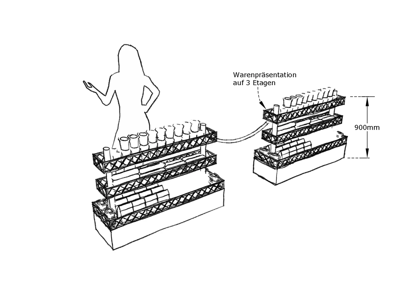 - Flexible Nutzung als Korblager bei abnehmender Warenmenge im Tagesverlauf