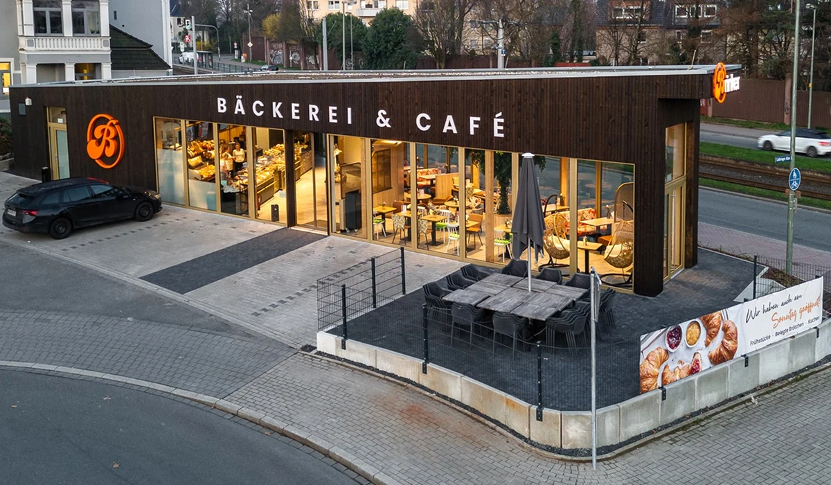 Mit dem im Januar 2024 eröffneten Freestander wurde ein optimal effizientes Shopkonzept in einem ungewöhnlichen Grundriss umgesetzt mit großzügiger Backwarenpräsentation und schönen Sitzbereichen auf kleiner Fläche.