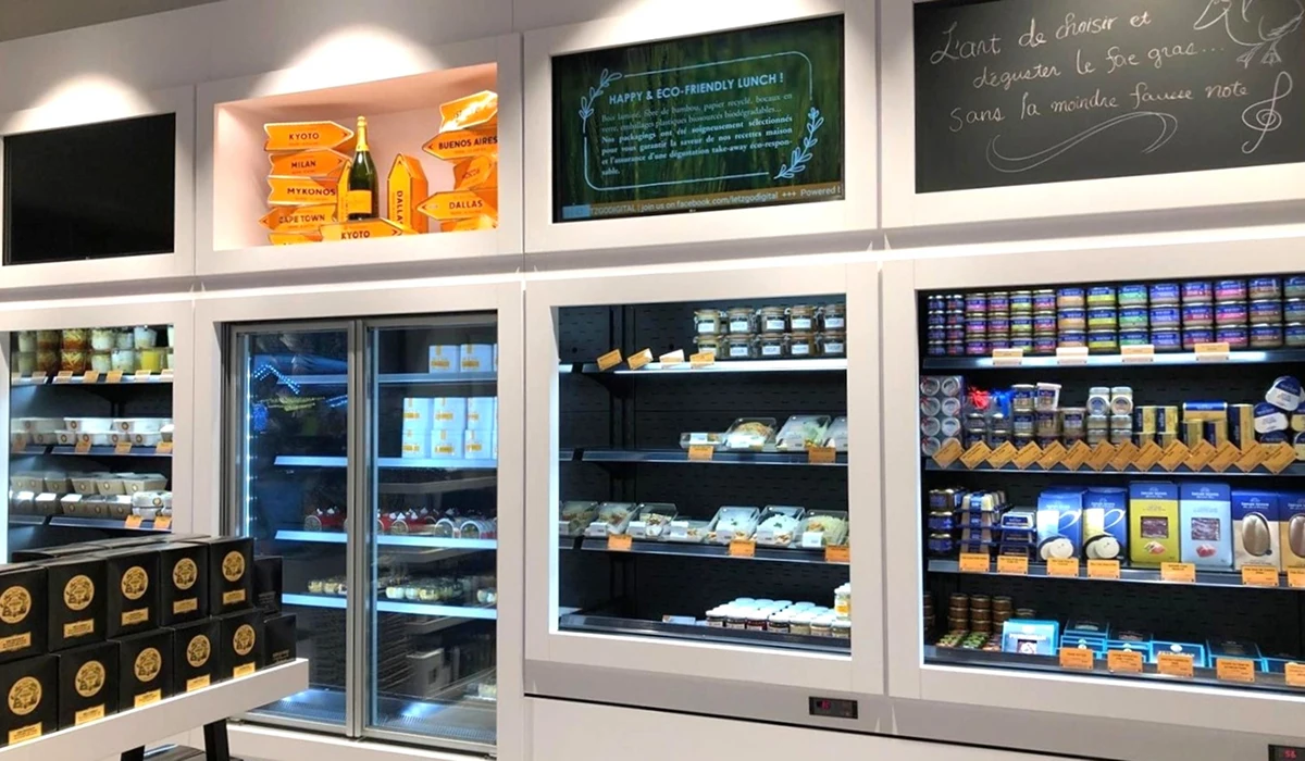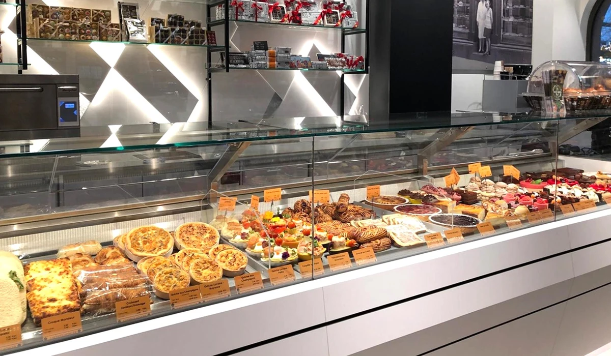 Dafür wurden hochwertige Selbstbedienungskühlmöbel für Feinkost und Getränke sowie individuell abgestimmte Kühltheken und -vitrinen mit differenzierten Temperaturzonen für Pâtisserie, veredelte Backwaren und Snacks konzipiert und gefertigt. Ergänzt wird das Konzept durch vielseitige Regal- und Präsentationsmodule für Handelswarensortiment und Geschenkartikel.