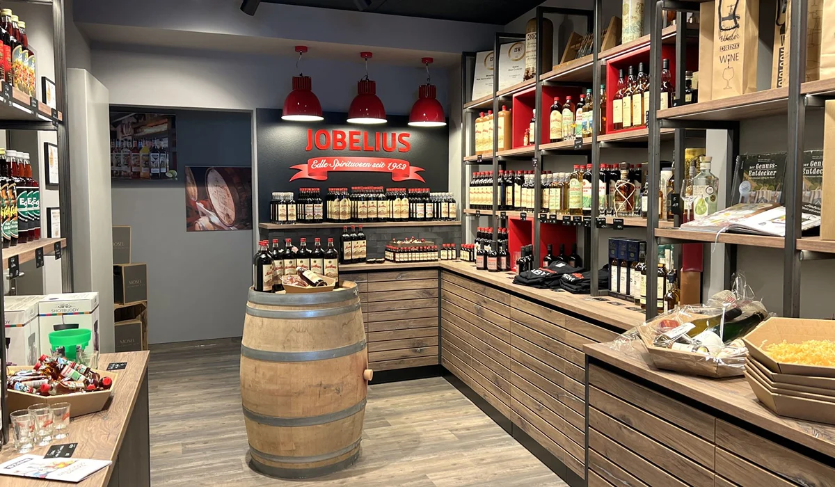 Neben moselländischen Spirituosen-Spezialitäten werden auch Weine und Sekte des Jobelius-Labels angeboten sowie regionale Schinkenspezialitäten und sonstige Feinkost.